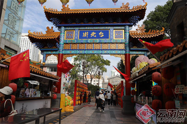 r随着国庆假期到来,昆明夜市人气飙升。位于昆明南强街巷的台北街,尽管全长只有138米,却汇聚了数十种正宗台湾美食,吸引大量游客到此品尝台湾特色美食。在这里,不仅能看到台湾夜市经典美食,还能感受到两岸文化的深度融合。夜市里,灯笼上云南书法家写下的“福”字,传递着春城的祝福。小吃街中央戏台两侧的彩绘墙,也在诉说着乡愁。